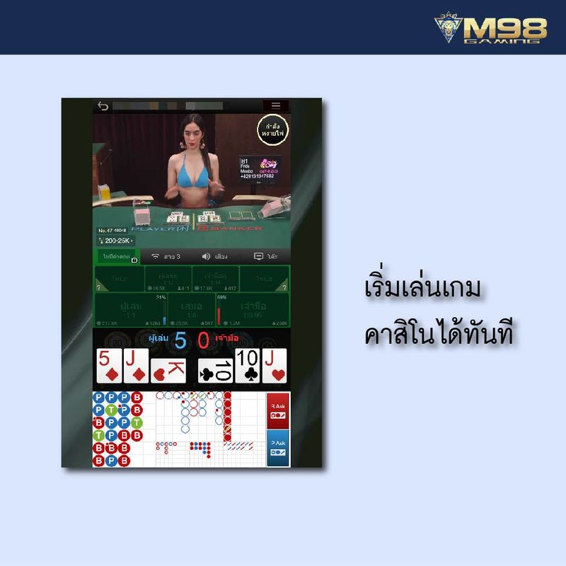 เดิมพันเกมคาสิโนสดผ่าน M98 รับโบนัสสูงสุดถึง 1.5 เปอร์เซ็นต์