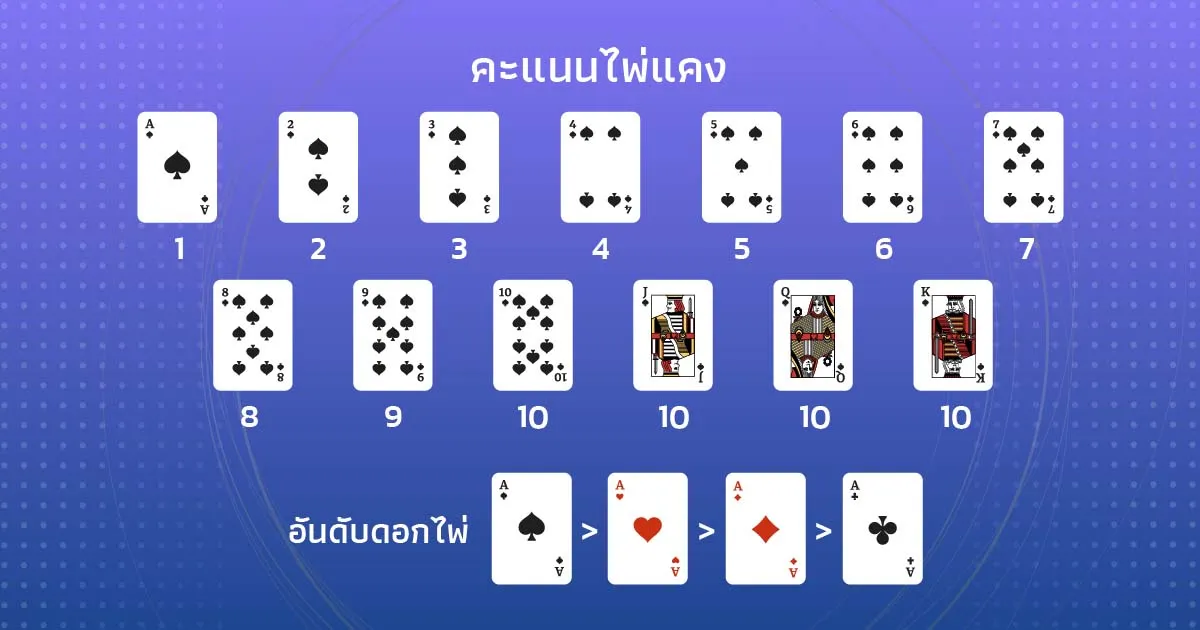 ลำดับไพ่แคงเรียงจากใหญ่สุด รอยัล สเตรทฟลัช > สเตรทฟลัช > โฟร์การ์ด > ฟูลเฮ้าส์ เห่า > ไพ่สีดอกเหมือน > ไพ่เรียง > ไพ่ตอง จะเป็นฝ่ายชนะ พร้อมอัตราจ่ายเงิน เรียงจากมาก > น้อย